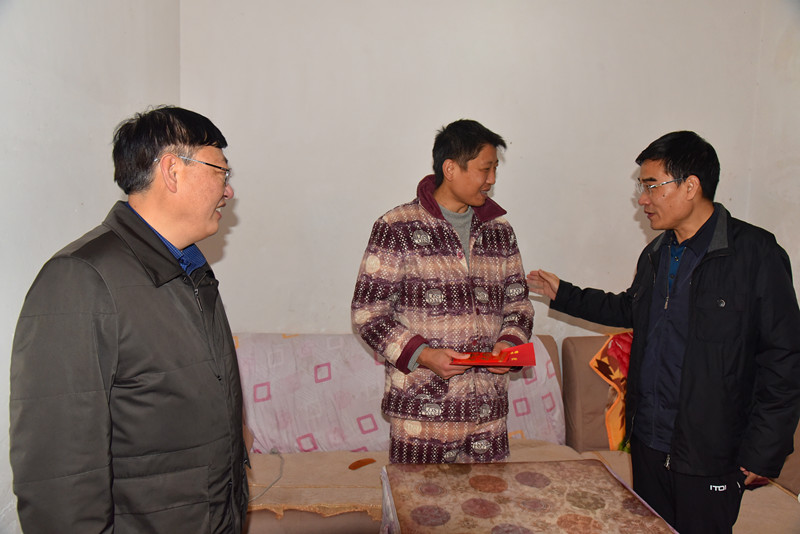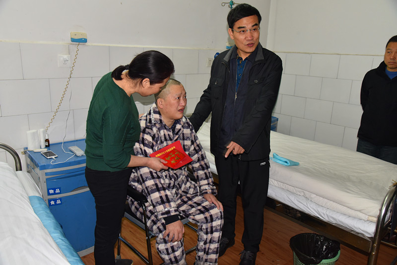 2019年元月15日上午,恒天集團工會主席荊新保一行不辭路途遙遠,冒雨來到邵紡機公司家屬樓和職工醫(yī)院看望慰問身患重病的質(zhì)管部職工曾亦雄和動力部職工肖海軍。公司總經(jīng)理楊建軍、黨委書記劉序焱、工會主席何雨陪同慰問。