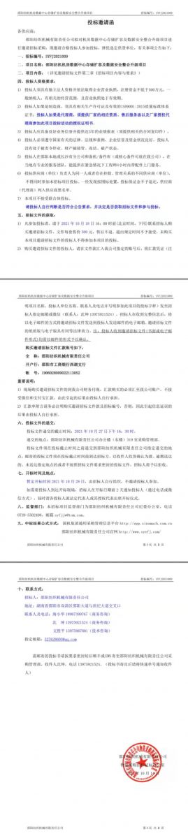 邵陽紡機機房數據中心存儲擴容及數據安全整合升級項目 投標邀請