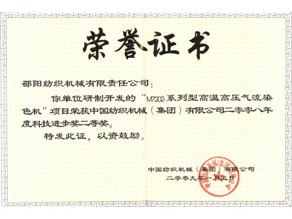 Group company second prize for High temperature and high pressure airflow dyeing machine